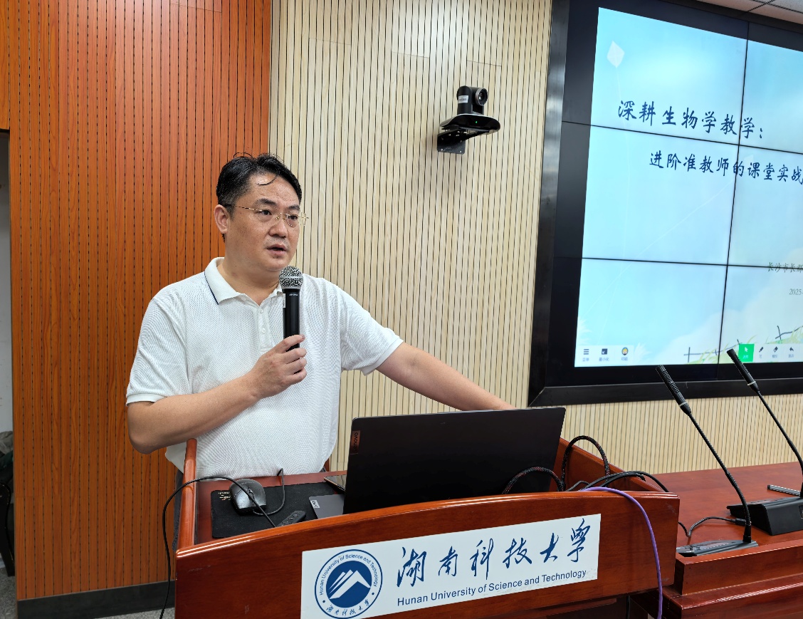 9 月 29 日14:30,长沙市长郡中学高级教师邓娟,在八教310 学术报告厅,以“深耕生物学教学:进阶准教师的课堂实战技巧与专业成长策略”为主题,与师生们展开互动交流。活动由院党委书记龙赢主持,校内外师生现场参与,同步线上直播。