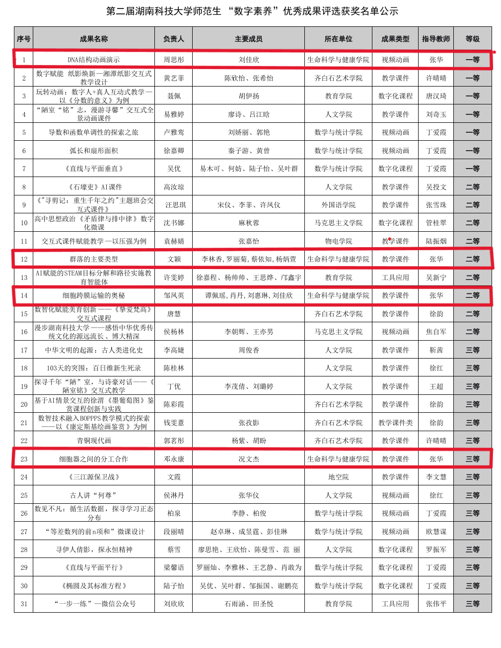 其中,由周思彤同学负责、刘佳欣同学共同参与的《DNA结构动画演示》作品,以生动的视频动画形式,直观展现了生物学科中的重要微观结构,荣获本次评选一等奖。该作品体现了学生将抽象生物学知识转化为可视化教学资源的能力,得到了评审专家的一致认可。