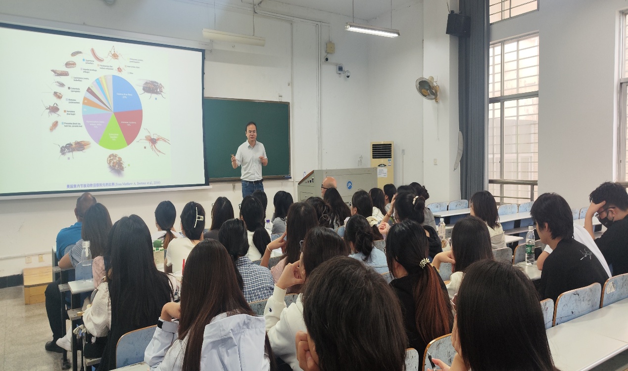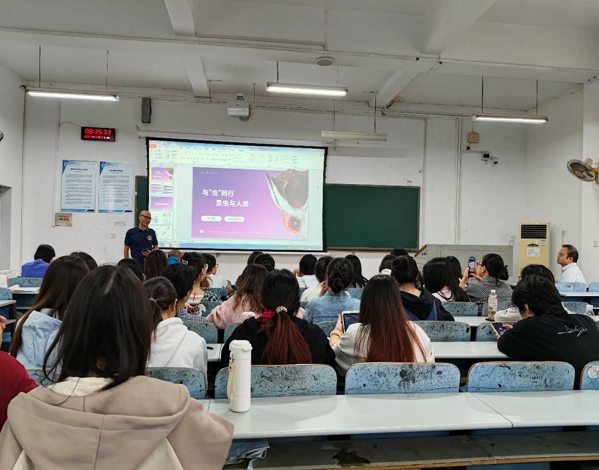 9月30日上午8:30,由无码av影片 承办的科技与人文大讲堂第93讲,围绕“与“虫”同行——昆虫与人类”主题在八教414开讲。本次讲座由梁飞扬老师主讲,生物科学系主任唐新科主持活动,无码av影片 师生代表到场观摩学习。